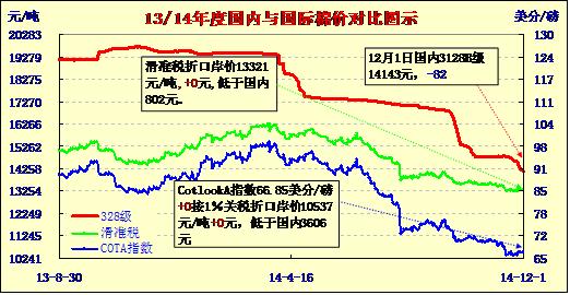 國(guó)內(nèi)外棉價(jià)對(duì)比圖表(12-01)