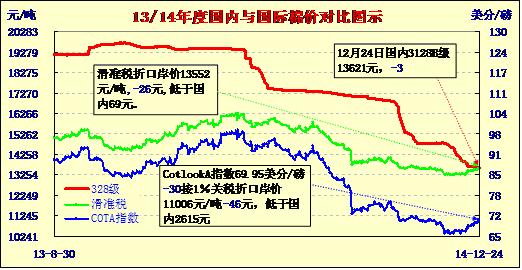 國內(nèi)外棉價(jià)對比圖表(12-24)