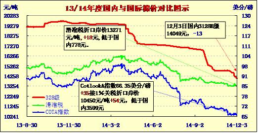 國內(nèi)外棉價對比圖表(12-03)