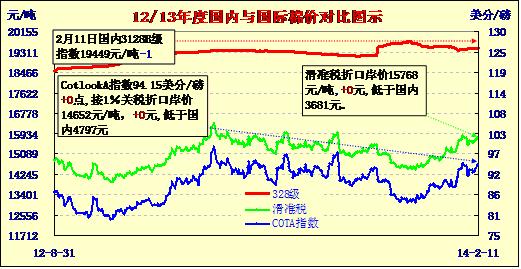 錦橋紡織網(wǎng)—資訊頻道> 棉花信息> cotlook>正文 國內(nèi)外棉價對比圖表(02-11)