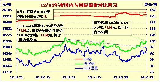 國(guó)內(nèi)外棉價(jià)對(duì)比圖表(02-12)