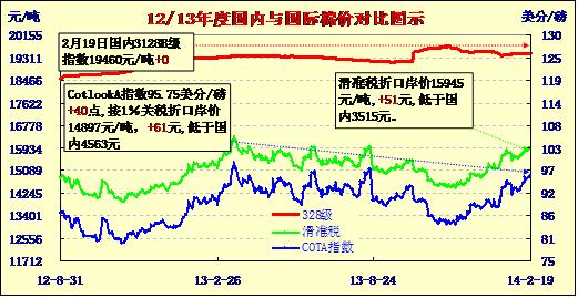 國內(nèi)外棉價(jià)對比圖表(02-19)