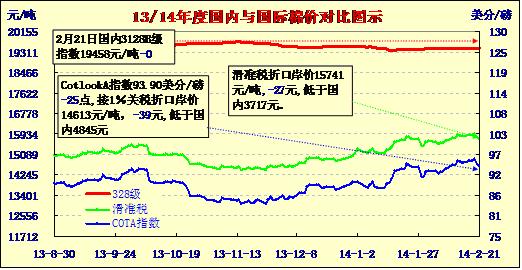 國內(nèi)外棉價(jià)對比圖表(02-21)