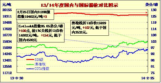 國內(nèi)外棉價(jià)對比圖表(02-25)