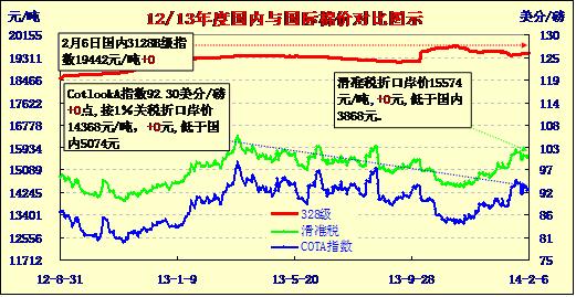 錦橋紡織網(wǎng)—資訊頻道> 棉花信息> cotlook>正文 國內(nèi)外棉價對比圖表(02-06)