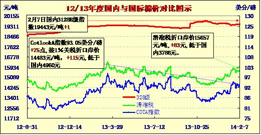 國(guó)內(nèi)外棉價(jià)對(duì)比圖表(02-07)