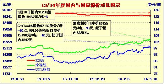 國(guó)內(nèi)外棉價(jià)對(duì)比圖表(03-18)