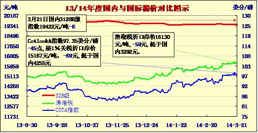 國(guó)內(nèi)外棉價(jià)對(duì)比圖表(03-21)