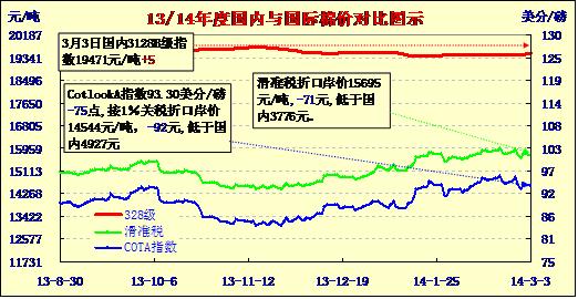 國內(nèi)外棉價(jià)對比圖表(03-03)