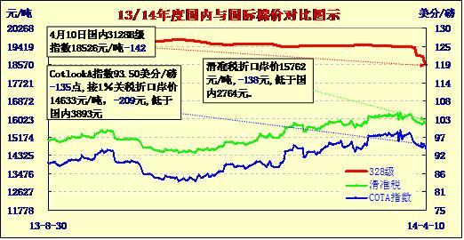 國(guó)內(nèi)外棉價(jià)對(duì)比圖表(04-10)