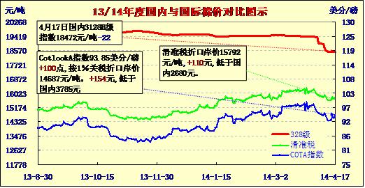 國內(nèi)外棉價(jià)對比圖表(04-17)
