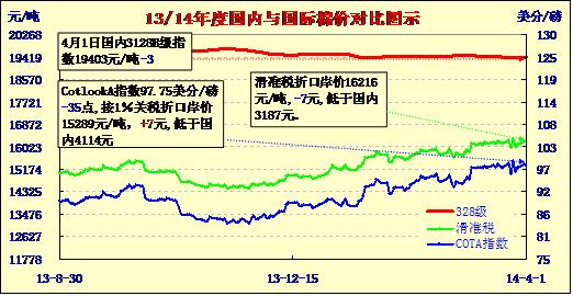 國(guó)內(nèi)外棉價(jià)對(duì)比圖表(04-01)