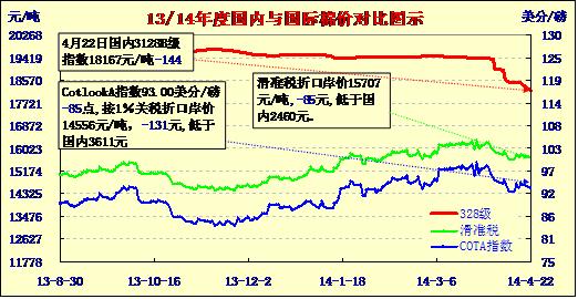 國內(nèi)外棉價對比圖表(04-22)