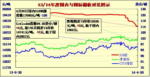 國內(nèi)外棉價對比圖表(04-28)