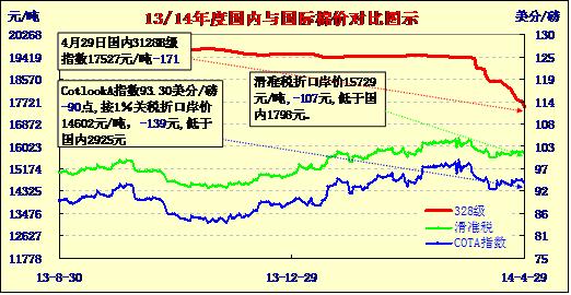 國內(nèi)外棉價對比圖表(04-29)