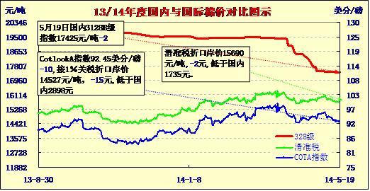 國內(nèi)外棉價(jià)對比圖表(05-19)