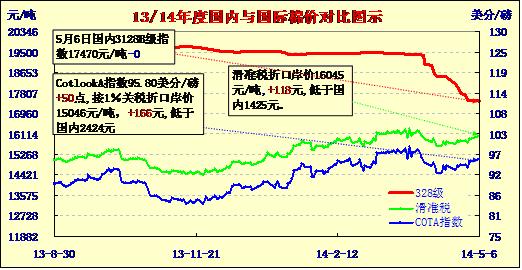 錦橋紡織網(wǎng)—資訊頻道> 棉花信息> cotlook>正文 國內(nèi)外棉價對比——價差大縮(05-06)