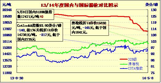 國內(nèi)外棉價(jià)對比圖表(05-08)