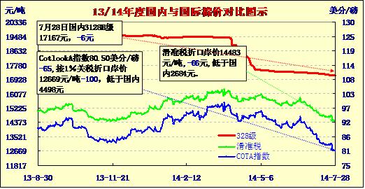 國內(nèi)外棉價(jià)對比圖表(07-28)