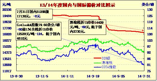 錦橋紡織網(wǎng)—資訊頻道> 棉花信息> cotlook>正文 國內(nèi)外棉價對比圖表(07-31)