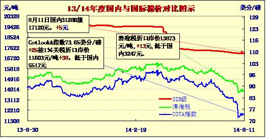 錦橋紡織網(wǎng)—資訊頻道> 棉花信息> cotlook>正文 國內(nèi)外棉價對比圖表(08-11)
