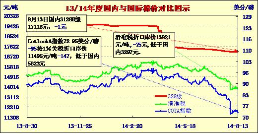 國內(nèi)外棉價對比圖表(08-13)