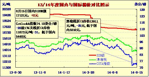 國內(nèi)外棉價對比圖表(08-15)