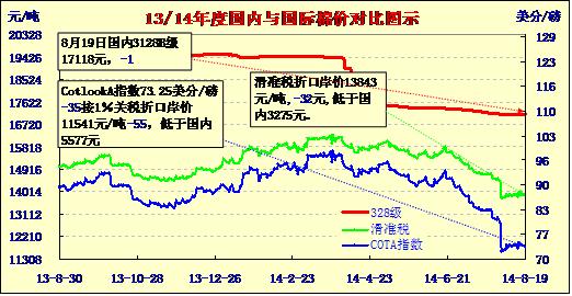 國內(nèi)外棉價(jià)對(duì)比圖表(08-19)