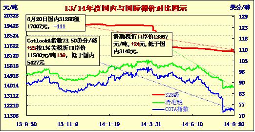國(guó)內(nèi)外棉價(jià)對(duì)比圖表(08-20)