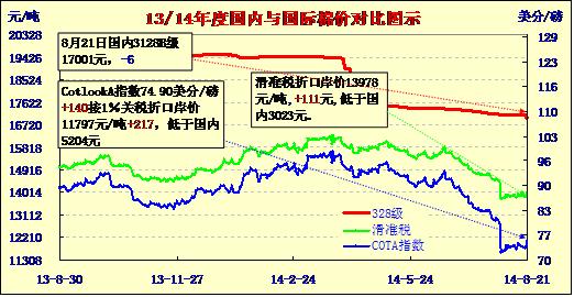 國(guó)內(nèi)外棉價(jià)對(duì)比圖表(08-21)