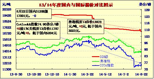 國內(nèi)外棉價(jià)對(duì)比圖表(08-22)