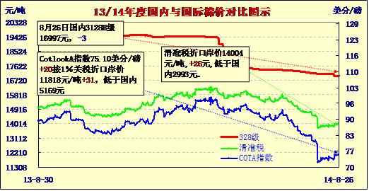 國內(nèi)外棉價(jià)對比圖表(08-26)