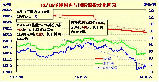國內(nèi)外棉價(jià)對(duì)比圖表(08-27)