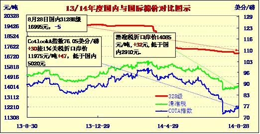 國內(nèi)外棉價對比圖表(08-28)