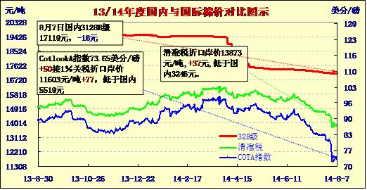 國內(nèi)外棉價對比圖表(08-07)