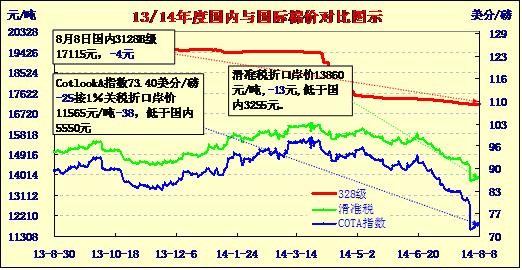 國內(nèi)外棉價(jià)對比圖表(08-08)