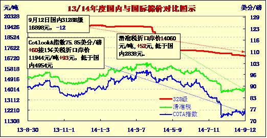 錦橋紡織網(wǎng)—資訊頻道> 棉花信息> cotlook>正文 國內(nèi)外棉價對比圖表(09-12)