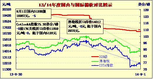 國內(nèi)外棉價(jià)對(duì)比圖表(09-01)