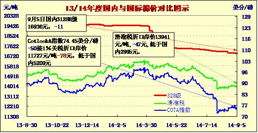 國內(nèi)外棉價對比圖表(09-05)