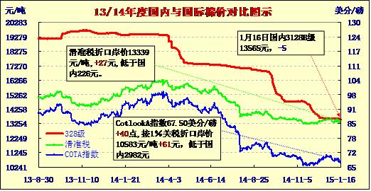 國(guó)內(nèi)外棉價(jià)對(duì)比圖表(01-16)