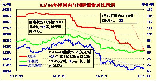 國內(nèi)外棉價對比圖表(01-19)