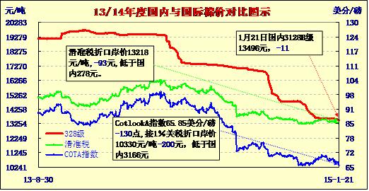 國(guó)內(nèi)外棉價(jià)對(duì)比圖表(01-21)