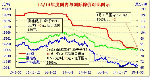 國(guó)內(nèi)外棉價(jià)對(duì)比圖表(01-30)