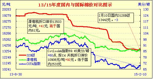 錦橋紡織網(wǎng)—資訊頻道> 棉花信息> cotlook>正文 國(guó)內(nèi)外棉價(jià)對(duì)比圖表(02-10)