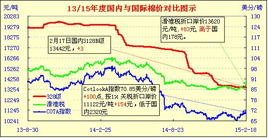 國(guó)內(nèi)外棉價(jià)對(duì)比圖表(02-18)