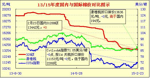 錦橋紡織網(wǎng)—資訊頻道> 棉花信息> cotlook>正文 國內(nèi)外棉價對比圖表(02-23)