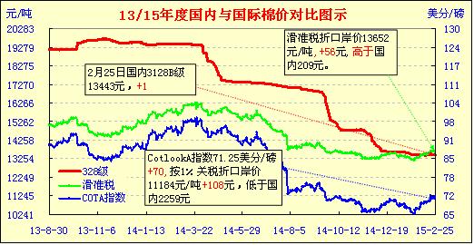 國(guó)內(nèi)外棉價(jià)對(duì)比圖表(02-25)