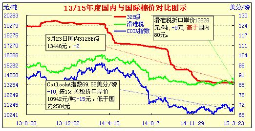 錦橋紡織網(wǎng)—資訊頻道> 棉花信息> cotlook>正文 國內(nèi)外棉價對比圖表(03-23)