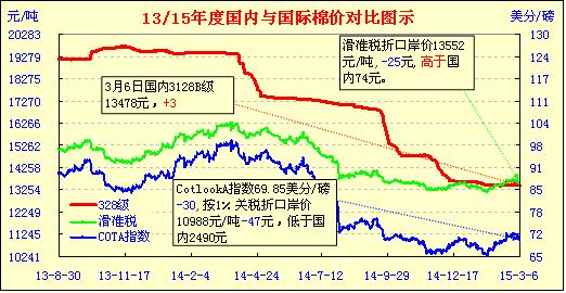 錦橋紡織網(wǎng)—資訊頻道> 棉花信息> cotlook>正文 國(guó)內(nèi)外棉價(jià)對(duì)比圖表(03-06)