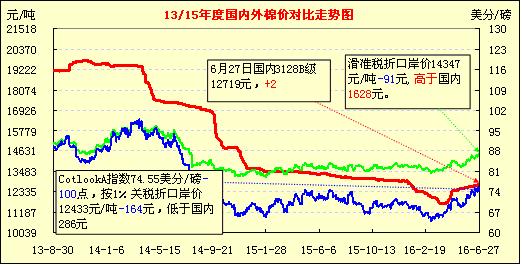 國內(nèi)外棉價對比圖表(06-27)